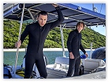 Die beiden Delfin-Trainer Chris und Karl werden vom Chef des