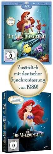 Walt Disneys Titelheldin aus "Arielle, die Meerjungfrau" (Originaltitel: The Little Mermaid) gehört zweifellos zu den berühmtesten Meerjungfrauen der Gegenwart. Der Zeichentrickfilm erschien 1989 zum ersten Mal in den deutschen Kinos (mit Ute Lemper als Arielles Gesangsstimme). In Amerika spielte er bereits am Startwochenende 10 Mio. US-Dollar ein und wurde so erfolgreich, dass man sich entschloss ihn 1998 erneut in die Kinos zu bringen. Dabei verschwand das alte Cover des Films, welches zuvor in die Diskussion geraten, weil einer der Palasttürme an einen Phallus erinnerte (siehe links). SynchronisationIn Deutschland entschloss sich Buena Vista außerdem für